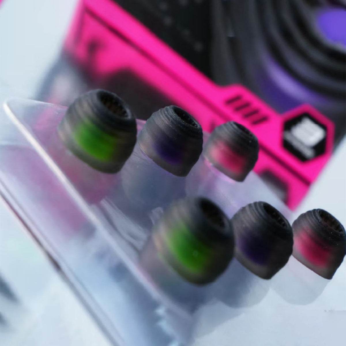 Earbud tips made from high-quality medical-grade silicone offer a safer, more comfortable, and more durable fit compared to standard materials, while also providing more consistent sound performance. This material also allows for precise implementation of advanced designs (such as bellows) while providing users with confidence in long-term performance.